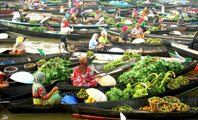Mereka memanfaatkan kondisi alam berupa sungai untuk berdagang. Mereka membuka lapak di atas perahu di sepanjang sungai dan menjual barang dagangan berupa hasil bumi.
