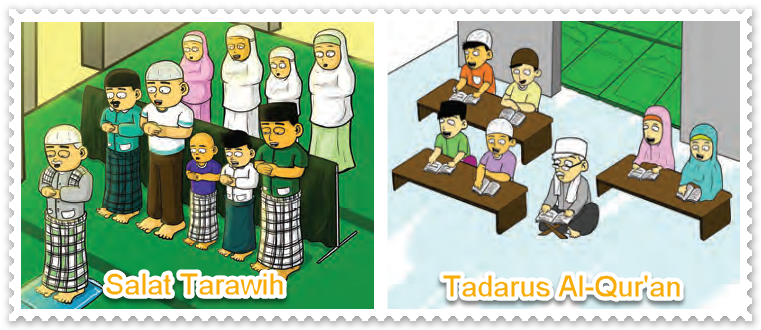 - Salat Tarawih dan Witir Berjamaah Di Malam Hari Setelah Salat Isya.